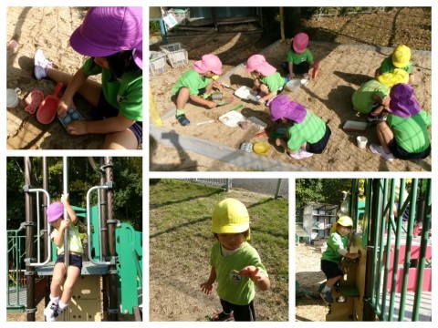 ドングリ拾いをしたり、虫とりや砂場でままごとをしたりして過ごしました。