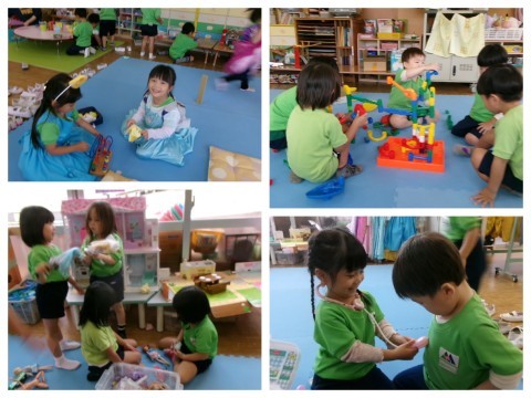 お部屋では友達とごっこ遊びを楽しむ姿たくさん見られるようになってきました。
