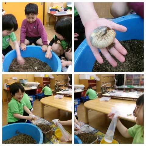 カブトムシの幼虫が見えたり,てんとう虫を見つけたり,