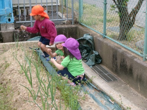夕方にも外遊びをしました。虫探しをしていたのですが,
