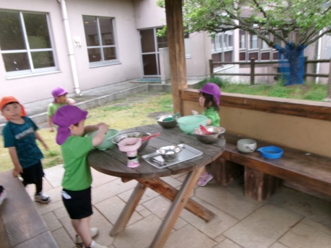 いっぱい体を動かして遊んでいるので、水筒が空っぽになる子がたくさんいました。