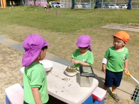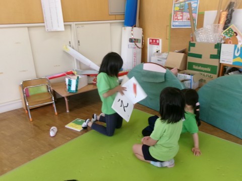 前に年長さんがしていたのを覚えていて、「自分たちも作ってみたい」と見よう見まねで始めたようです。