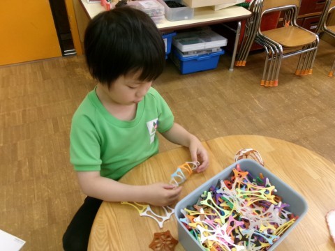 朝から自分でしたい遊びを見つけ、友達や先生と一緒に楽しんでいます。