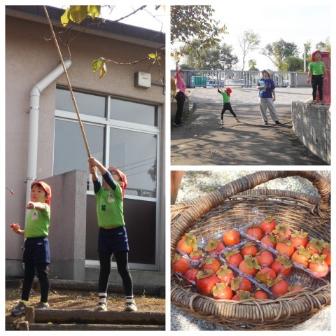 おはよう広場では、子どもたちが柿とりに夢中になっていました。