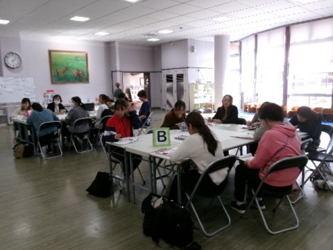 保育後には、これまでの遊びの広がりや友だち同士のつながり、環境設定などについての説明があり、その後、2グループに分かれて気づきや感想を話し合い全体でも交流しました。