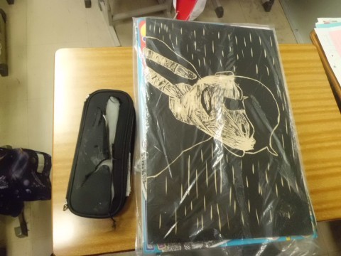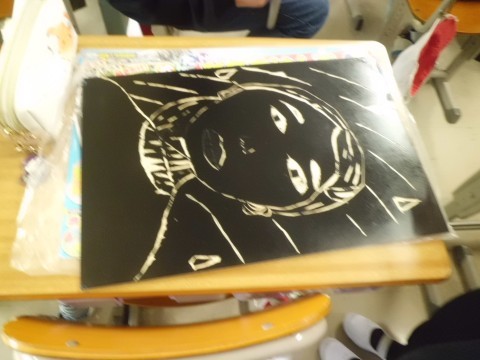 図工の彩色木版画です。