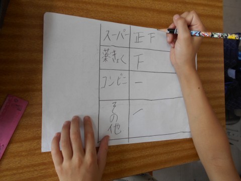 自分たちの家では、どこの店で買い物をするかを調べて、集計しています。