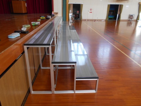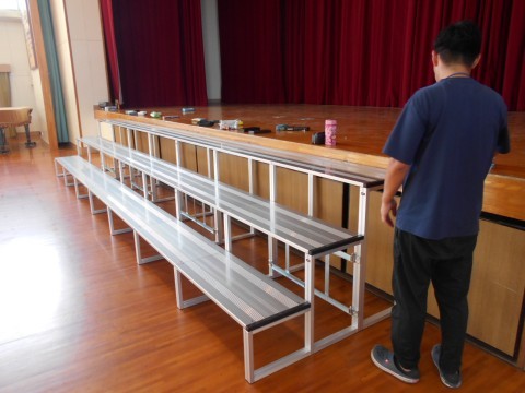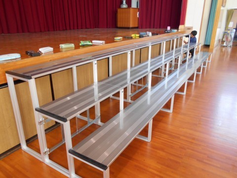 PTAで購入していただいた雛壇が、本日納品されました。軽量で、組立・解体も容易です。連合音楽会発表会をはじめ、各種学校行事、学年行事で有効に活用させていただきます。