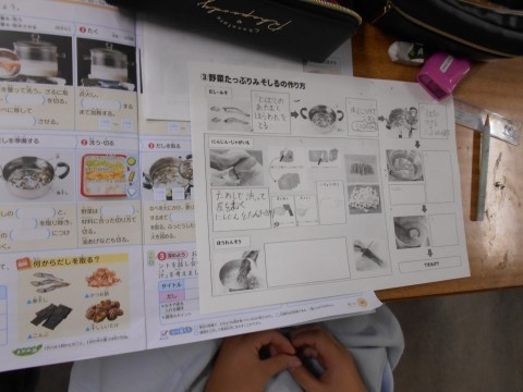 家庭科で、「みそ汁」の作り方の学習をしています。