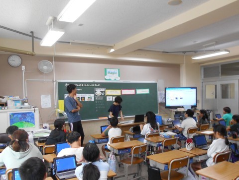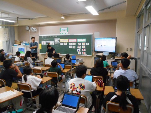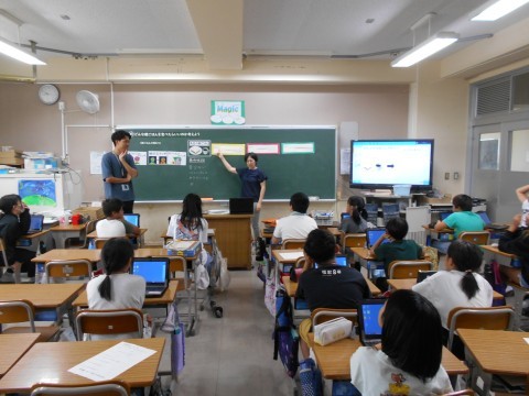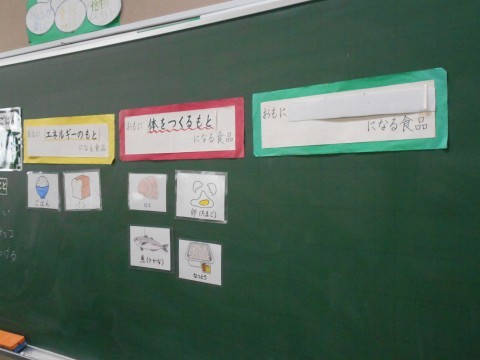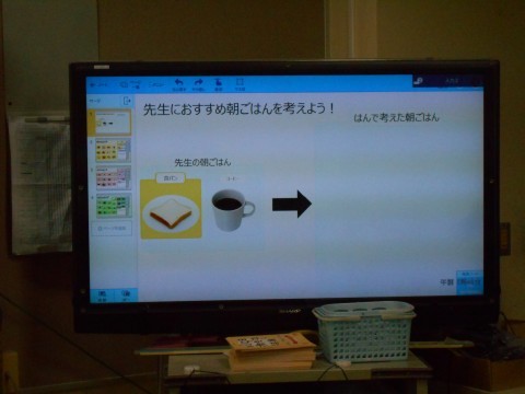 近隣校の栄養教諭の先生に来ていただき、「朝食の重要性」についてお話していただきました。写真は1組の様子です。