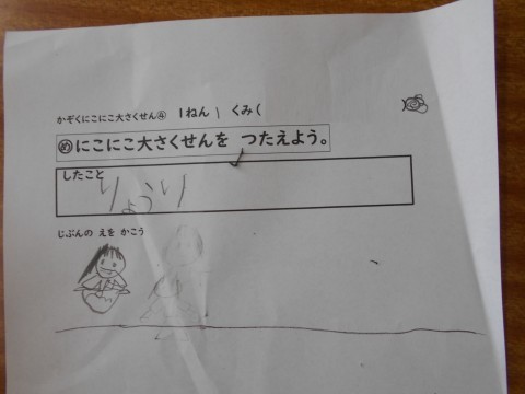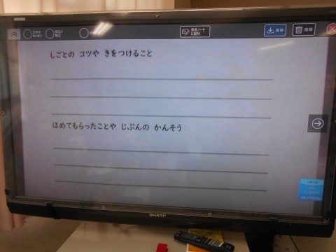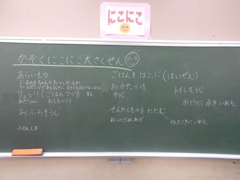 生活科の「かぞくにこにこ大さくせん」のまとめの様子です。