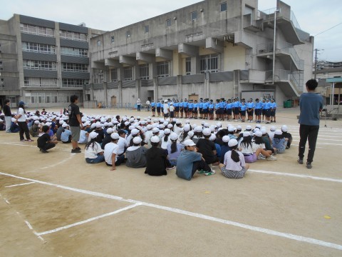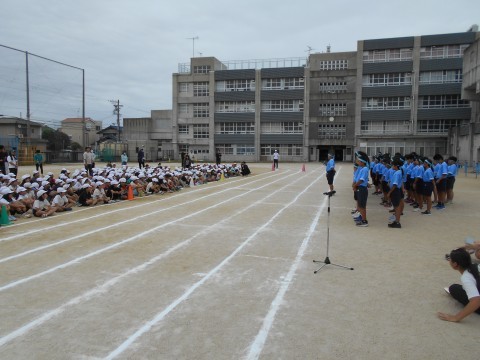 5限めに「連運壮行会」を行いました。内容は、代表による各競技の実技発表、励ましの言葉、6年生からの言葉等でした。