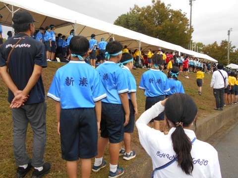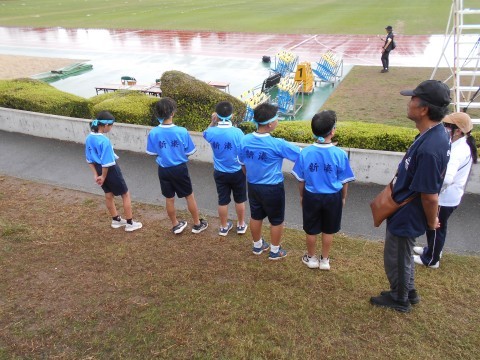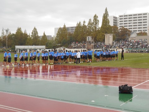 一旦は競技場内に整列したものの、降雨のためテント内での開会式となりました。