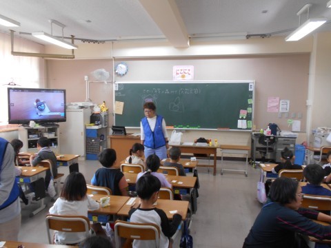 ゲストティーチャーによる「どんぐり教室」を開催しました。写真は、1年2組です。