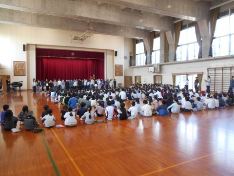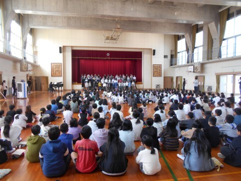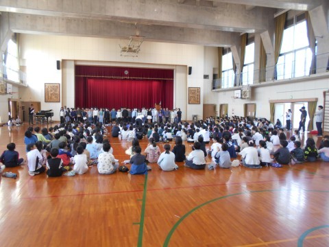 先日行われた6年生の「連合運動会」の表彰と明後日行われる5年生の「連合音楽会」の壮行会を行いました。