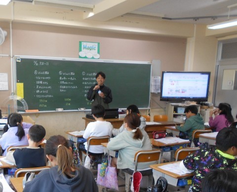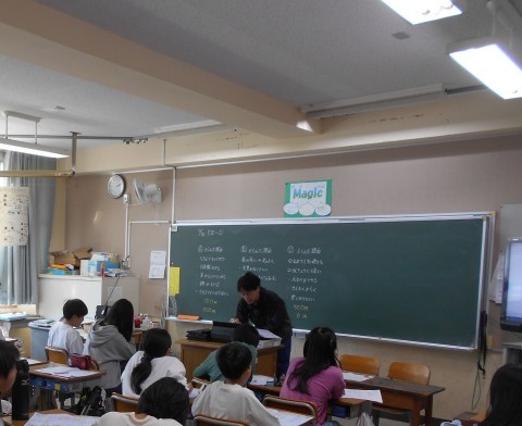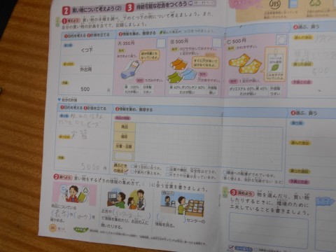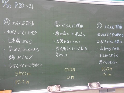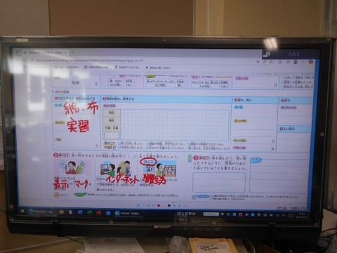 家庭科の授業で、布を選ぶ観点について、学習しています。