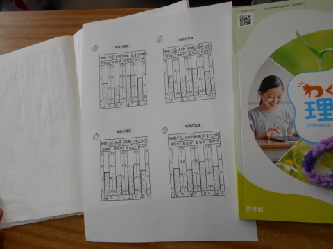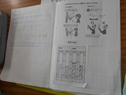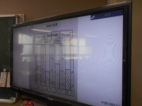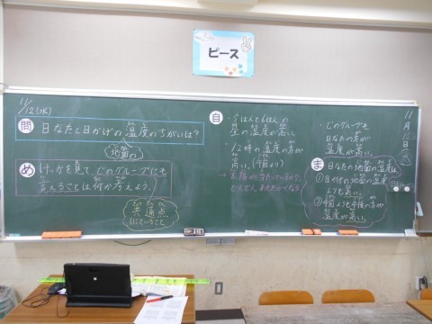 理科で、日なたと日かげの温度のちがいについて学習しています。