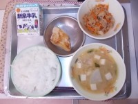今日の献立は,牛乳・ごはん・ほうとう・ひじきの甘煮・小魚の佃煮です