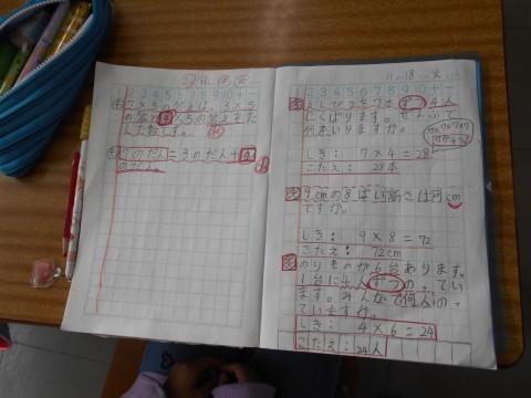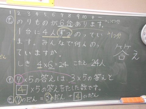 算数で、九九の学習をしています。