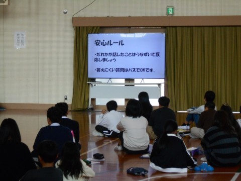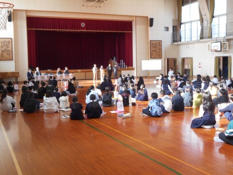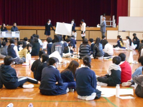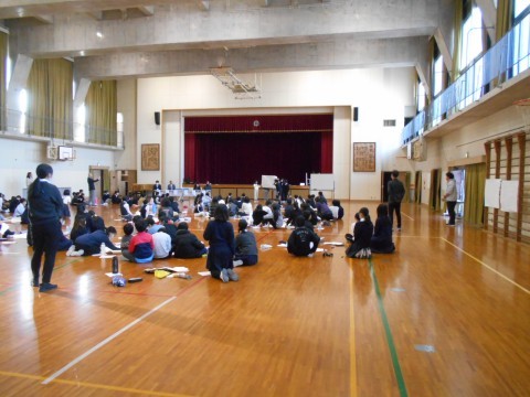 午後、英彰小学校6年生に来校してもらい、「にんげん」学習交流会を実施しました。
