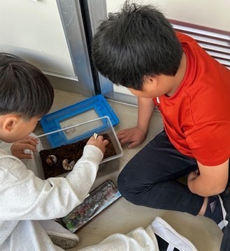 だんごむしやウーパールーパー,カブトムシ等,生き物の観察やお世話をしました。