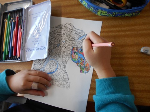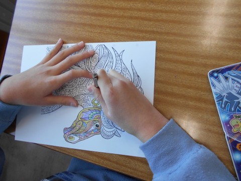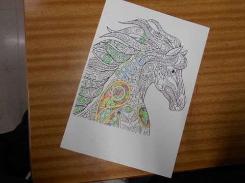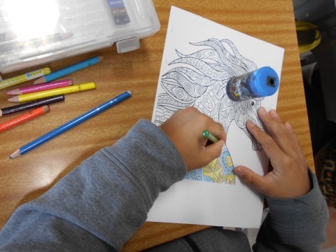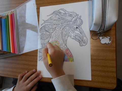 今年の干支(えと)の午(うま)に色を塗り、抱負を書きます。