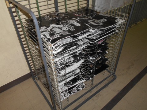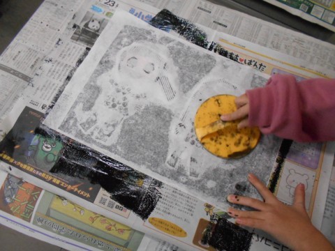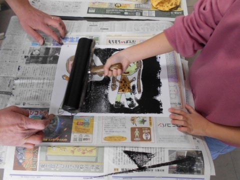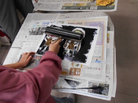 図工で、紙版画を刷っています。