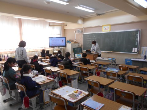 3学期の算数は単元によって少人数指導を行っています。写真は1組教室の様子です。