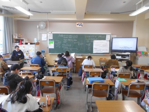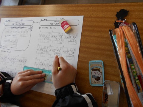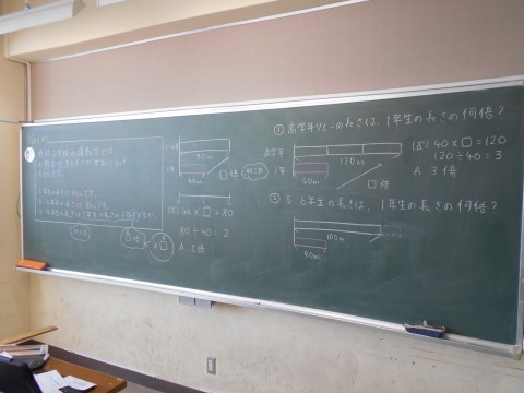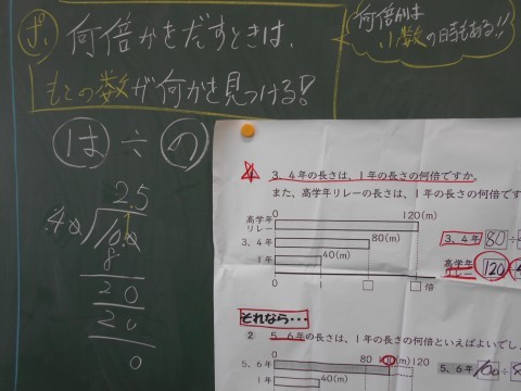2学級を3分割しての算数の少人数指導です。写真は3枚ずつ、1組教室、2組教室、算数教室の様子です。