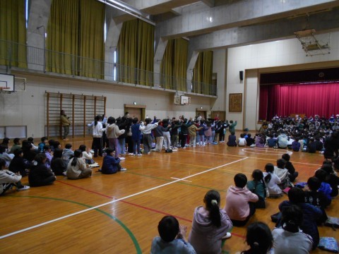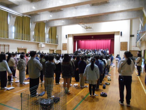 6年生入場・開会と3年生の発表です。