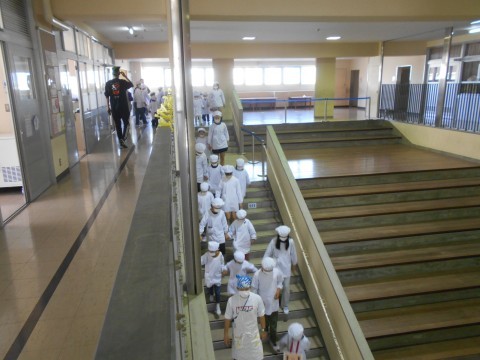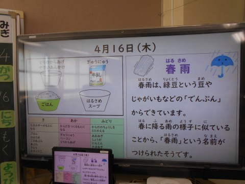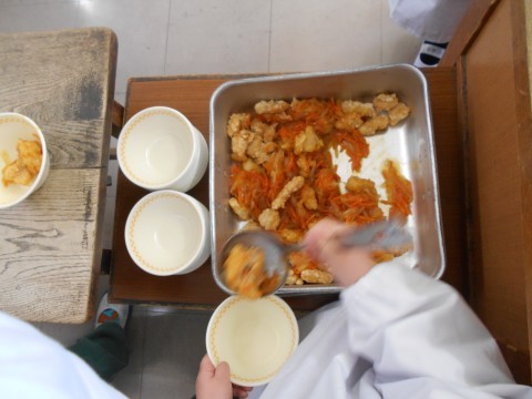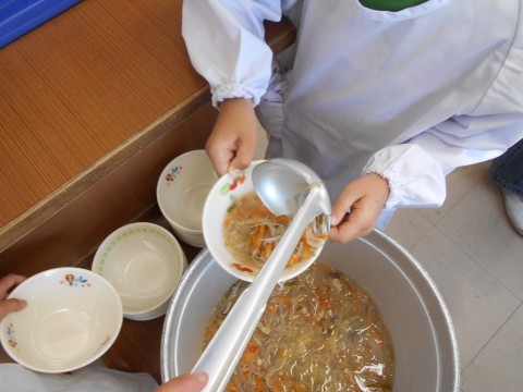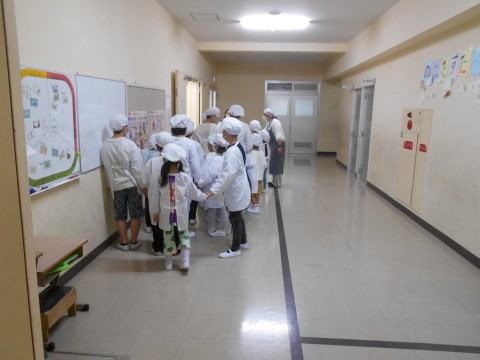 1年生は初めて給食を取りに行き、配膳しました。その際、6年生が補助してくれました。ありがとうございます。