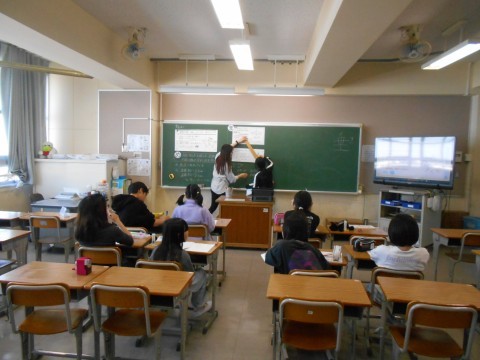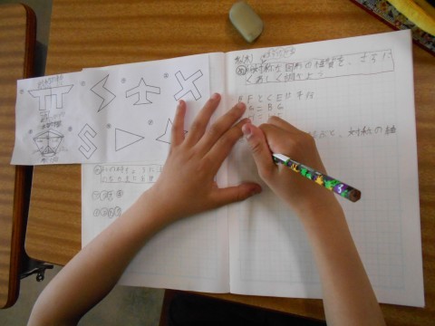 学年を3分割しての算数の少人数指導です。写真は上から3枚ずつ、1組教室・2組教室・算数教室の様子です。