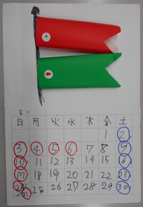 ひまわり学級から5月のカレンダーをいただきました。デザインは、鯉のぼりです。