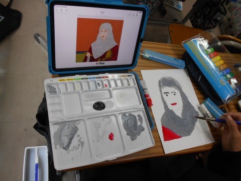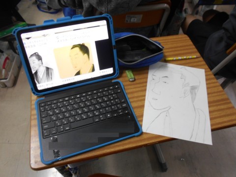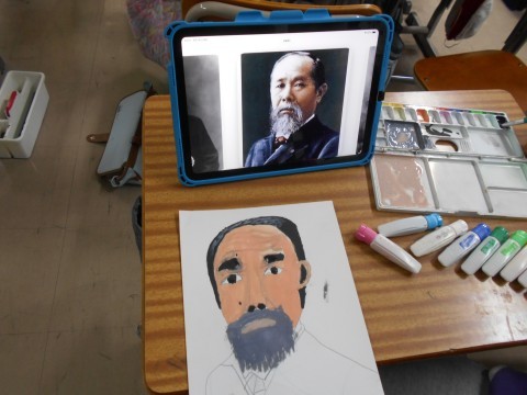 図画工作の時間の様子です。誰を描いているのか分るでしょうか?