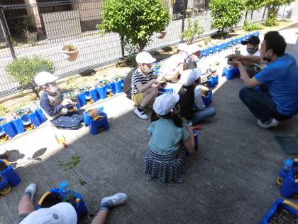 Cグループの苗の植え替えの様子です。今日は,いい天気だったのでたくさん水をあげました。
