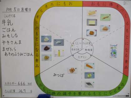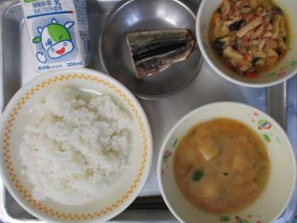 ごはん・牛乳・みそ汁・まぜたら秋の風味ごはん・焼きさんま