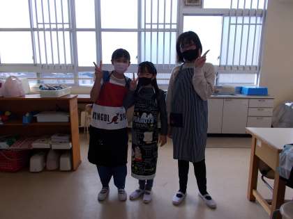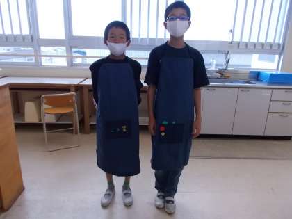 エプロンが完成したら,ポケットとアップリケをつけました。