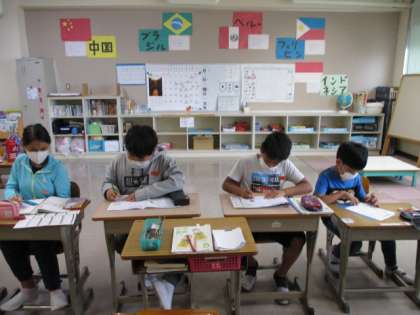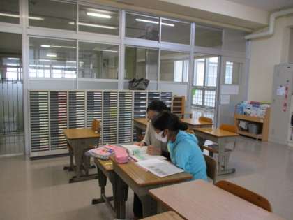 5年生は算数のテストが近づいてきているので、復習をしています。チャイムがなるまで集中していました。