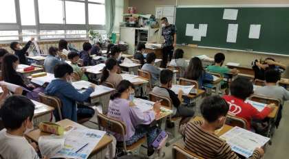 理科のテスト返しをしていました。結果は思っていたよりよかったですか?間違えたところは,見直しておきましょうね。