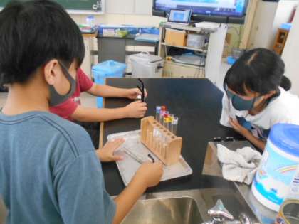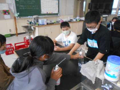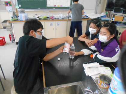 先週の実験の復習として,二酸化炭素を水に溶かして,炭酸水を作りました。