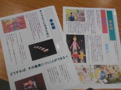 総合の学習では,キャリア教育として将来の夢について考えています。