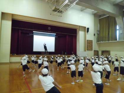 きょうは,5じかんめと6じかんめにたいいくをしました。2きょくめのダンスをれんしゅうしました。かけっこのならびかたのれんしゅうもしました。
