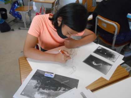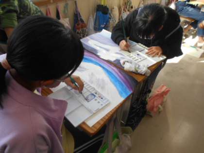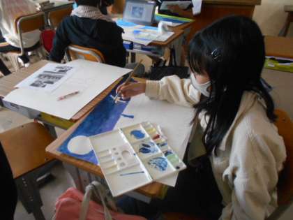 図工では,「銀河鉄道の夜」の絵を描いています。
