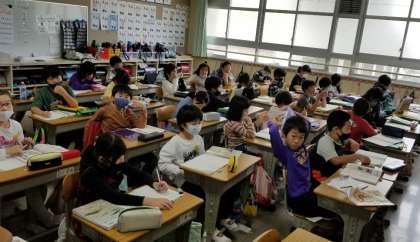 ということで,みんなで学校の周りを歩いて見に行きました。教室に戻ってきてから見つけたものをノートにまとめました。