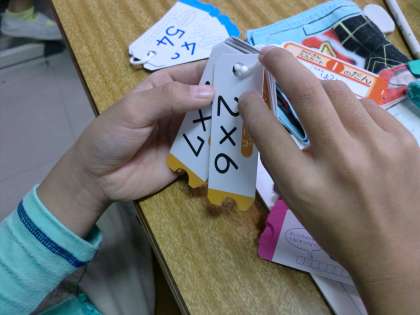 算数のかけ算の学習をしていました。くりかえし声に出してしっかりと覚えてね。
