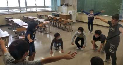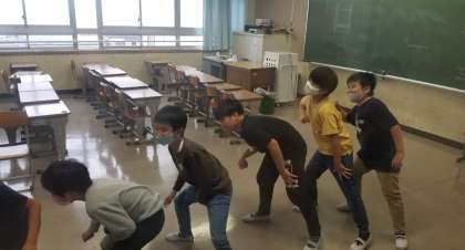 少人数教室から音楽が聞こえるので,のぞいてみると自分たちで練習をしていました。本番に向けて,どんどん曲に合わせられるようになってきて,余裕もでてきています(^^)