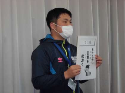 今日の放送朝礼で,生徒指導の先生より,今月の生活目標についての話と帰ってからの過ごし方について話がありました。落ちていた消しゴムを拾ってくれた時,「ありがとう。」とすっと言えていますか。いろいろな場面で,心があったかくなる言葉を言えるようになると,自分も周りの人も気持ちいいですね。
