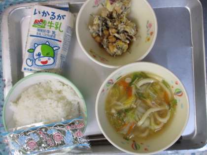 ごはん・牛乳・あんかけうどん・ひみこのスナック・味付けのり