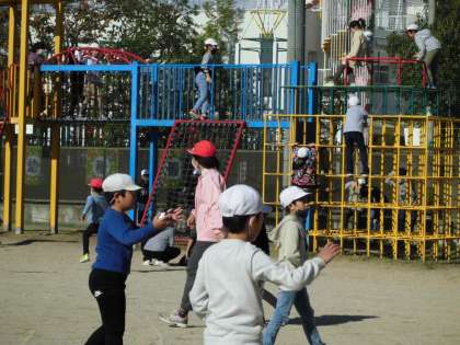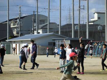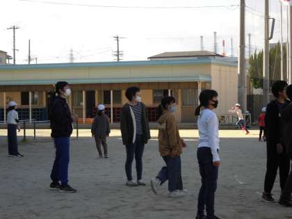 昼休みの運動場の様子です。少しさむくなってきましたが,元気いっぱいに外で遊んでいる人たちもたくさんいます。