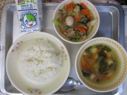 牛乳・ごはん・中華丼・わかめスープ